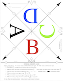 The Origami Answer Cards are a simple student response system that does not need electronic hardware. Students simply fold a single sheet of paper (it's easier than folding a Cootie Catcher) and then show one of the 4 choices to the instructor to answer the question. Click on any image to view and download.